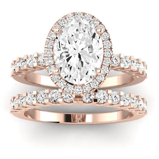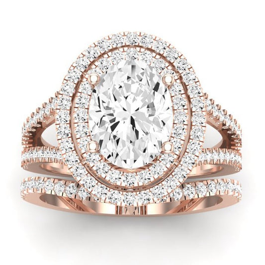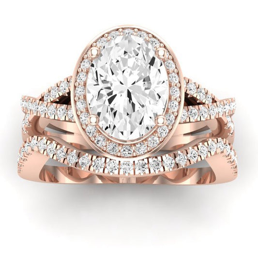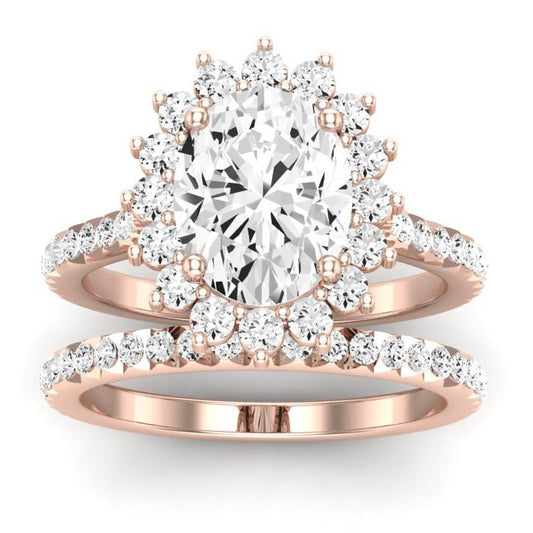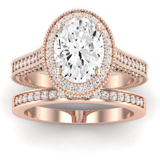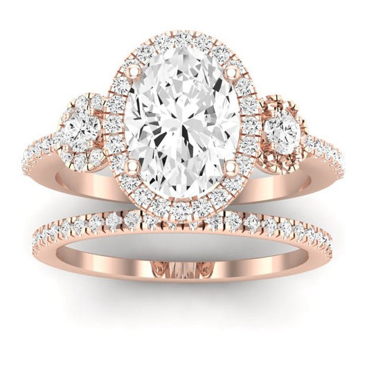 Rose GIA Natural Oval Diamond Bridal Set