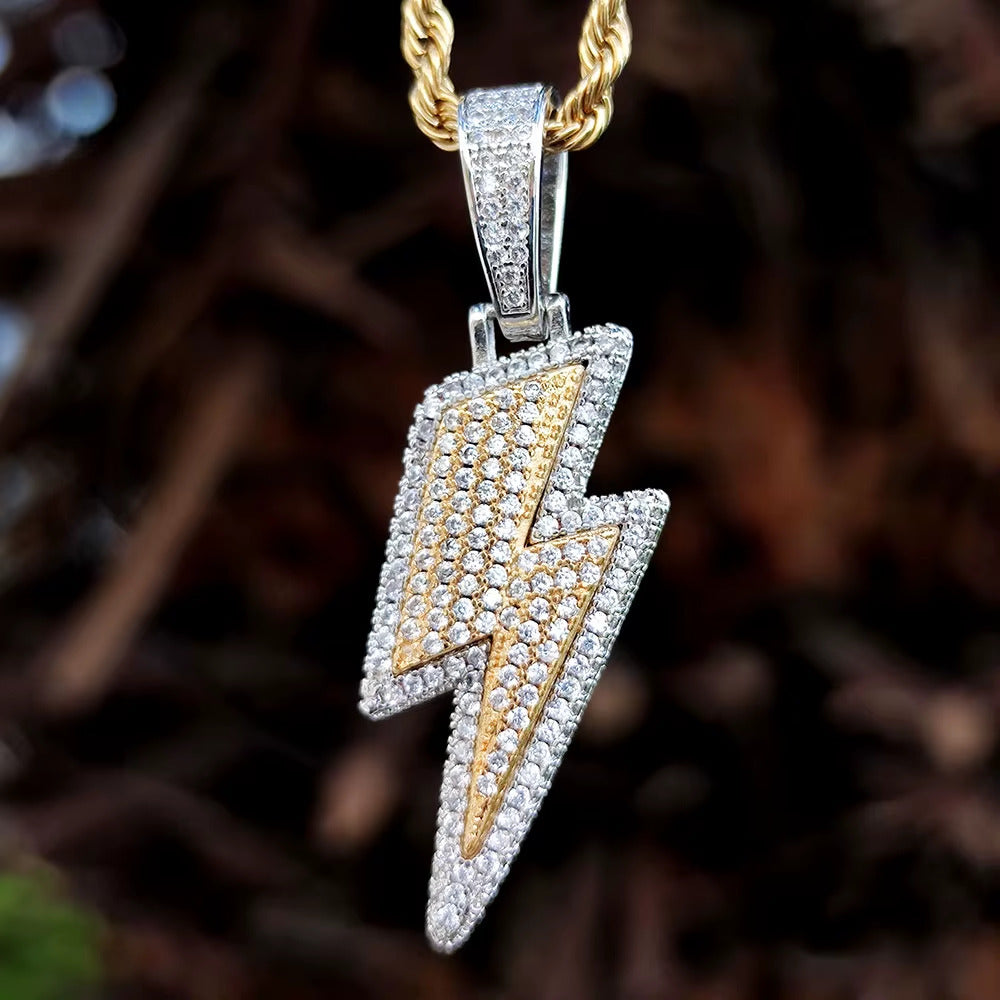 1.2 ct TCW Iced Out Lightning Bolt Diamond Charm Men's Pendant (Pendant Only. Chain Not Included)